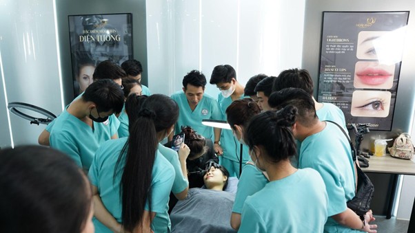 Không đơn thuần là những đường tô vẻ với màu phun, từng dáng chân mày, bờ môi, đường mí được kiến tạo nên bằng tri thức. Đó là sự hiểu biết về diện tướng, về ngũ quan, về sự hài hoà với đường nét trên từng gương mặt. Trong đó, dáng môi và chân mày kiến tạo nên được chuyên viên xem như một tác phẩm nghệ thuật.