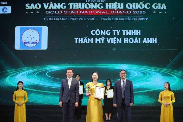 Giải thưởng Sao Vàng Thương Hiệu 2025 mà Thẩm mỹ viện Hoài Anh vừa vinh dự đón nhận tiếp tục là một dấu mốc quan trọng, khẳng định chất lượng dịch vụ và uy tín của hệ thống 13 chi nhánh trải dài trên cả nước. Đây không chỉ là niềm tự hào mà còn là minh chứng rõ nét cho hành trình 25 năm nỗ lực bền bỉ, tiên phong trong phương pháp làm đẹp có tri thức, kỹ thuật bài bản và đặt trọn chữ tâm nghề nghiệp vào từng dịch vụ làm đẹp.