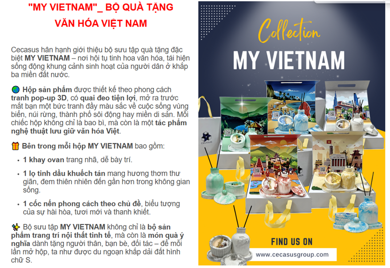 Với Cecasus, mỗi sản phẩm không chỉ là quà tặng, mà là một hành trình của nghệ thuật, ký ức và cảm xúc. Chúng tôi cam kết không ngừng sáng tạo, nâng tầm giá trị thủ công Việt, để mỗi món quà trao đi đều là một thông điệp trân quý, một cầu nối văn hóa, và một dấu ấn khó phai trong lòng người nhận.