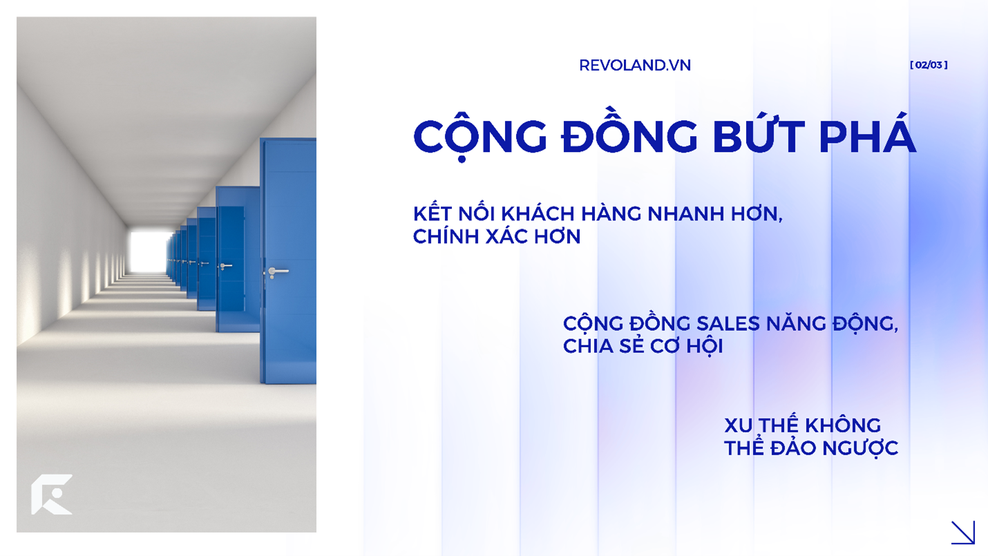 Điểm khác biệt khiến Revoland nổi bật chính là việc xây dựng cộng đồng sales bất động sản chuyên nghiệp. Không chỉ là nơi tiếp cận khách hàng, Revoland còn là không gian để môi giới chia sẻ dữ liệu, hợp tác cùng phát triển và trao đổi kinh nghiệm thực chiến.