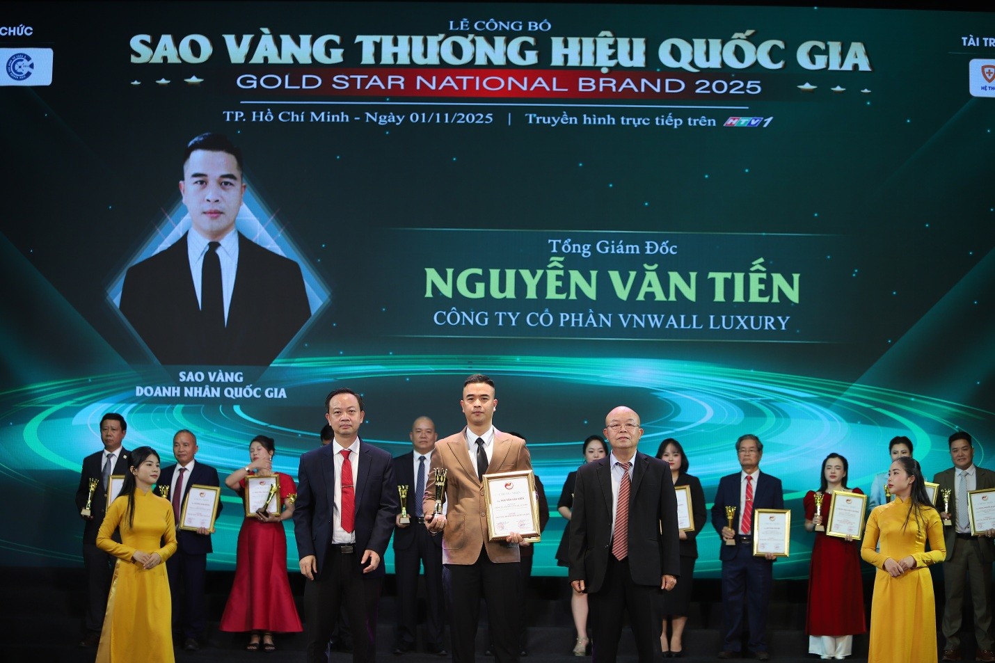 Ngày 01/11 vừa qua, tại Lễ vinh danh Thương Hiệu Sao Vàng Quốc Gia - 2025 do Viện Nghiên cứu Kinh tế Châu Á phối hợp cùng Liên Hiệp Khoa Học Phát Triển Doanh Nghiệp Việt Nam tổ chức tại Nhà hát Bến Thành, TP.HCM, và được phát sóng trực tiếp trên Đài truyền hình HTV1, doanh nhân Nguyễn Văn Tiến, Tổng giám đốc điều hành Công Ty Cổ Phần VNWALL LUXURY, đã vinh dự được xướng tên trong danh sách những doanh nhân tiêu biểu của Việt Nam. Sự kiện này không chỉ là một dấu mốc quan trọng trong sự nghiệp của ông mà còn là minh chứng cho sự thành công và uy tín của công ty đối với khách hàng và đối tác.