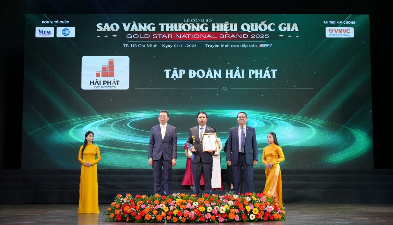 Ngày 1/11/2025, tại Nhà hát Bến Thành (TP. HCM), chương trình “Sao Vàng Thương Hiệu Quốc Gia 2025” do Viện Nghiên cứu Kinh tế Châu Á, Liên hiệp Khoa học Phát triển Doanh nghiệp Việt Nam và Đài Truyền hình TP. HCM phối hợp tổ chức đã vinh danh nhiều thương hiệu và doanh nhân tiêu biểu trên toàn quốc. Trong đó, doanh nhân Lê Thanh Hải, Thành viên Hội đồng Quản trị - Phó Tổng Giám đốc Thường trực Tập đoàn Hải Phát được vinh danh với danh hiệu “Sao Vàng Doanh nhân Quốc gia” – phần thưởng ghi nhận những đóng góp nổi bật của ông trong lĩnh vực bất động sản và quản trị doanh nghiệp.