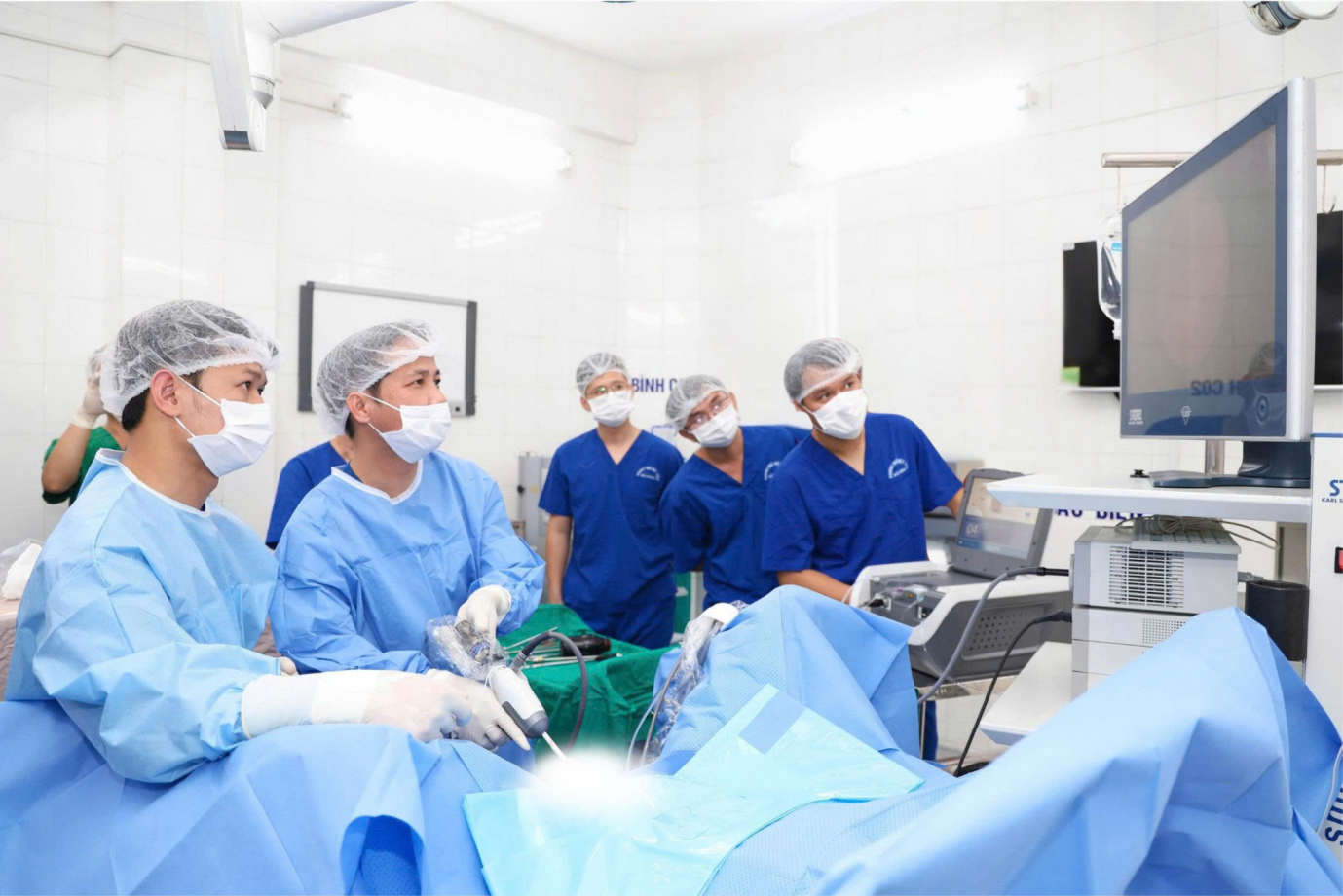 Bác sĩ Suntchai Wirotsaengthong (Chuyên gia về Rezum tại Thái Lan) đang hướng dẫn các bác sĩ tại bệnh viện Quốc Tế Thái Nguyên thực hiện ca điều trị