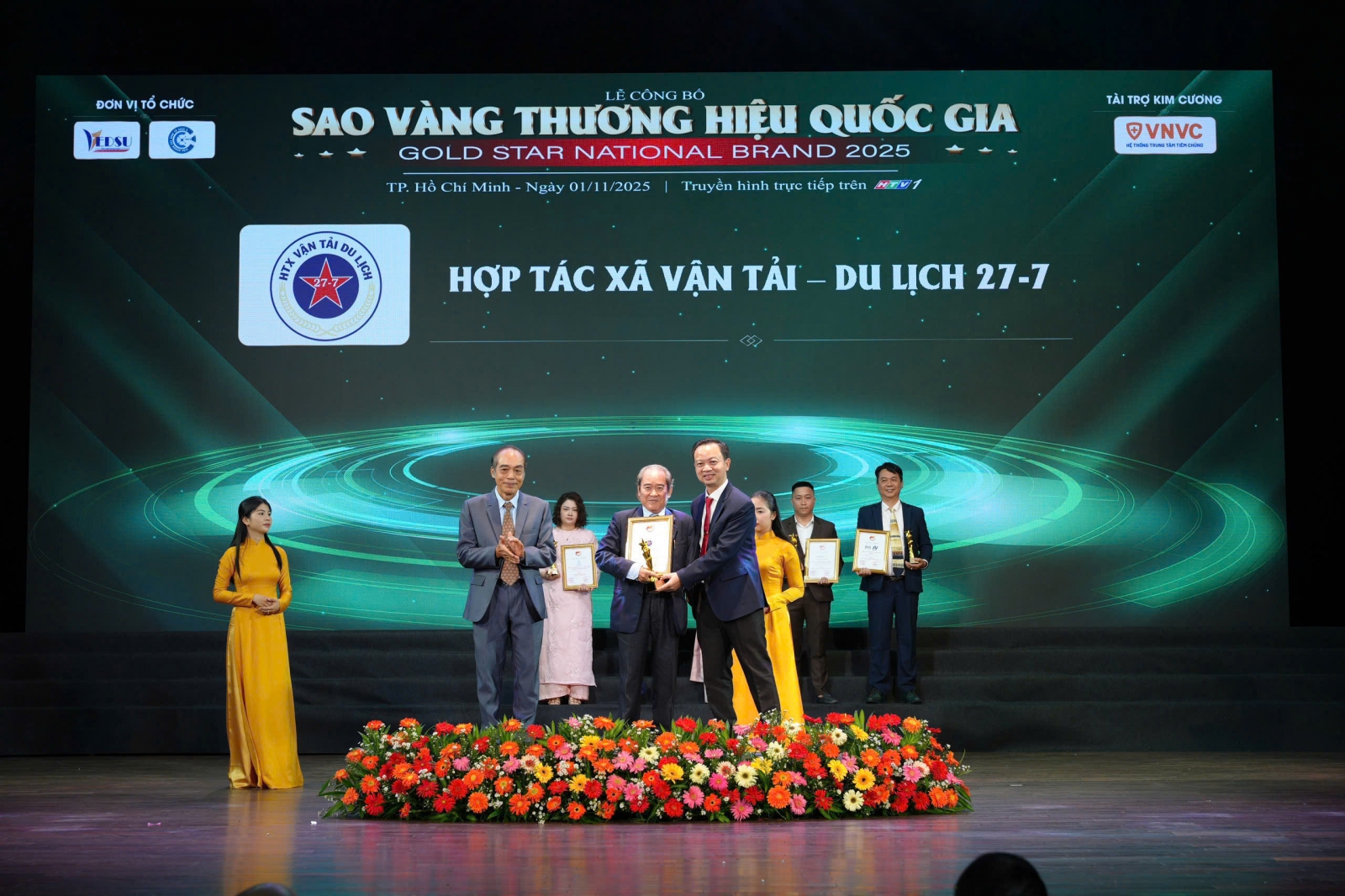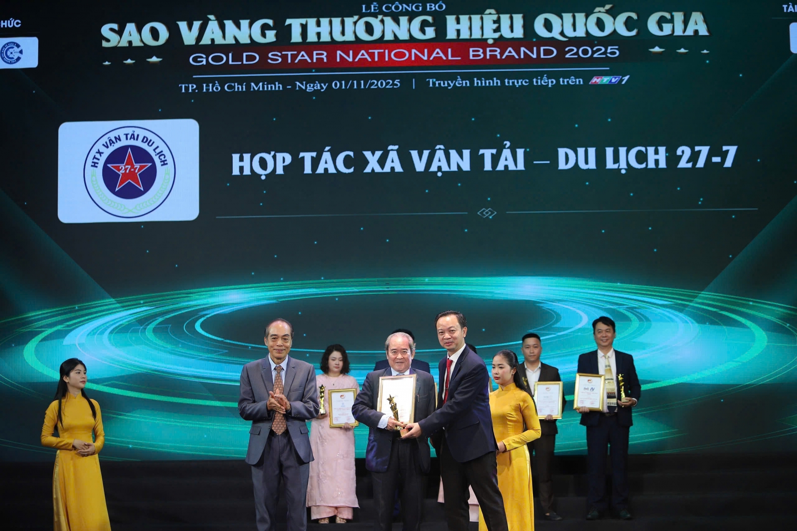 Đặc biệt, vào ngày 01/11/2025 vừa qua, Hợp tác xã Vận tải – Du lịch 27.7 vinh dự được xướng tên tại chương trình “Sao Vàng Thương Hiệu Quốc Gia năm 2025”, một trong những giải thưởng danh giá hàng đầu, tôn vinh các thương hiệu Việt tiêu biểu có đóng góp nổi bật cho sự phát triển kinh tế – xã hội của đất nước.