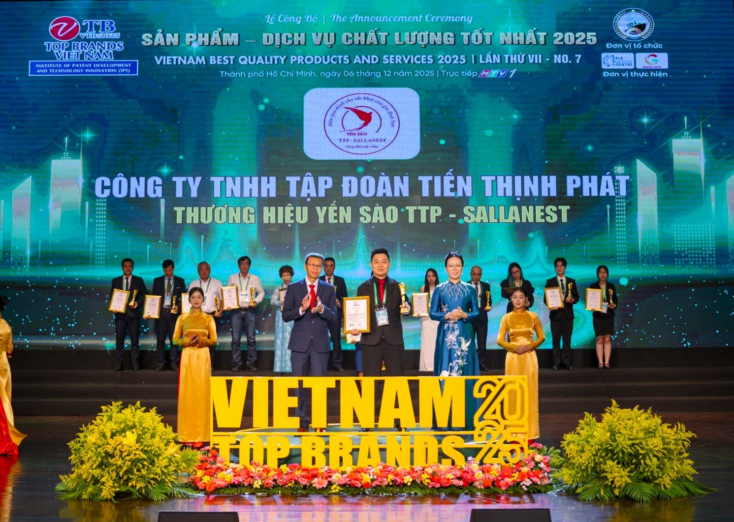 Giải thưởng được tổ chức thường niên hàng năm do Viện phát triển sáng chế và đổi mới Công nghệ, Trung tâm nghiên cứu và phát triển Doanh nghiệp Châu Á phối hợp với Đài Truyền hình TP Hồ Chí Minh và các đơn vị tổ chức. “Thương Hiệu Hàng Đầu Việt Nam - Vietnam Top Brands 2025" là nơi giao lưu, gặp gỡ, kết nối sáng tạo giữa các doanh nghiệp có thương hiệu xuất sắc, có sản phẩm dịch vụ uy tín, đồng thời vinh danh những thương hiệu có đóng góp tích cực, hiệu quả trong việc nâng cao chất lượng sản phẩm, dịch vụ và luôn hướng đến khách hàng bằng cam kết về chất lượng ngày càng tốt hơn. Mặt khác, ghi nhận sự bền bỉ sáng tạo không ngừng của doanh nghiệp, chủ động thích ứng, chuyển đổi số mạnh mẽ, phục hồi nhanh hoạt động sản xuất, kinh doanh. Các doanh nghiệp được vinh danh là những đơn vị đáp ứng tiêu chí quan trọng gồm: uy tín sức mạnh thương hiệu gia tăng mỗi năm (tăng trưởng thị phần, thị trường, độ nhận biết thương hiệu), sức mạnh sản phẩm, sự tín nhiệm, thực hiện tốt trách nhiệm xã hội và trách nhiệm cộng đồng.Trong bối cảnh nhu cầu sử dụng thực phẩm sạch, sản phẩm dinh dưỡng và các dòng thực phẩm tiện lợi tăng trưởng mạnh, Công ty TNHH Tập đoàn Tiến Thịnh Phát cho ra đời thương hiệu Sallanest như một biểu tượng thực phẩm “vì sức khỏe người Việt”. Với định hướng “lấy chất lượng làm trọng tâm – lấy sức khỏe cộng đồng làm sứ mệnh”, Tiến Thịnh Phát không ngừng đầu tư công nghệ hiện đại, xây dựng quy trình sản xuất đạt chuẩn và phát triển hệ sinh thái sản phẩm đa dạng, đáp ứng nhu cầu ngày càng cao của thị trường.